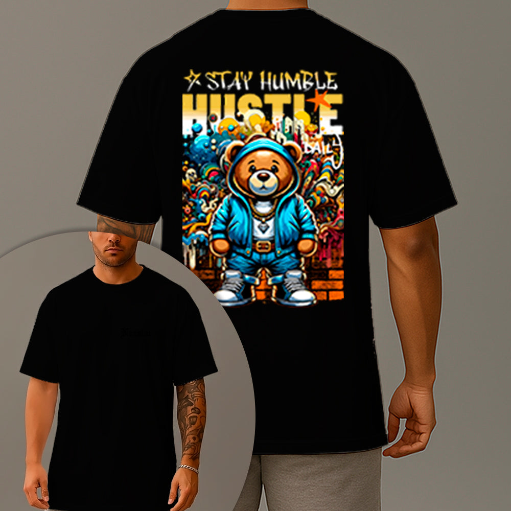 Camiseta Oversized Estampada Urso Hustle Algodão Premium Fio 30.1 Penteado Nexstar